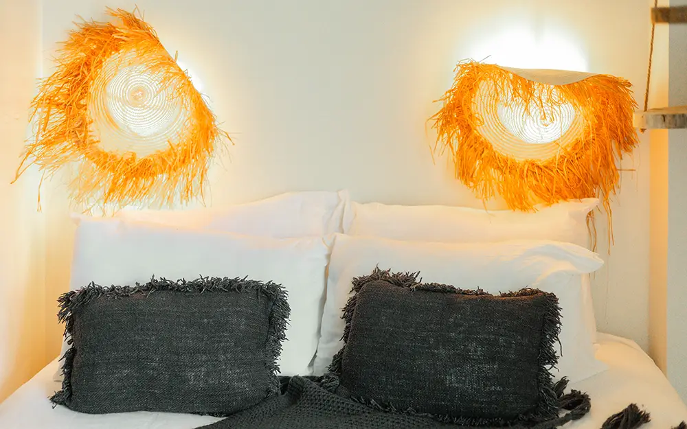 Our double rooms in Tolo are located right on the beach and offer instant beach access as well as some incredible views. Decorated in a modern-bohemian style that gives them a grounded and relaxing atmosphere while at the some time nodding to the villages history and tradition.