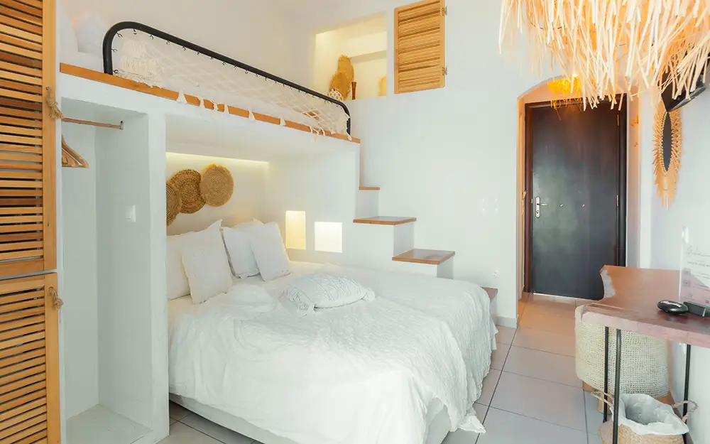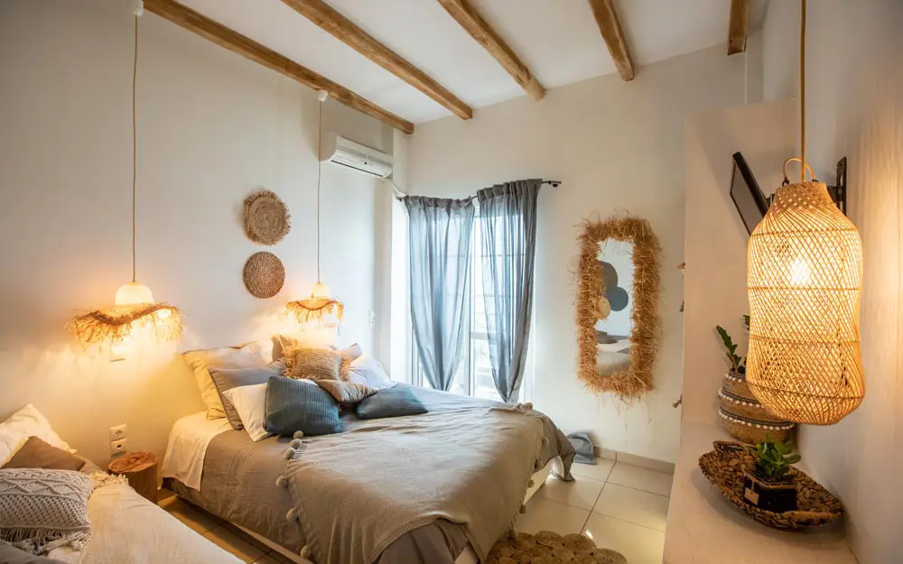 Our triple rooms in Tolo are located right on the beach and offer instant beach access as well as some incredible views. Decorated in a modern-bohemian style that gives them a grounded and relaxing atmosphere while at the some time nodding to the village's history and tradition. Use our triple rooms in Arcadia Hotel Tolo as your base for exploring The Peloponnese and return to relax and decompress.